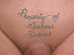47 yr old property of my Mistress, shaved & tattooed genital area and asscheeks, pa