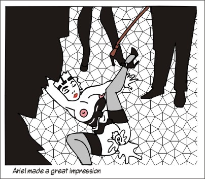 Sally delivered Ariel into the room and left without uttering a word. The four persons who was about to take advantage of her was wearing nothing but crocked, evil, grim and sardonic smiles. Ariel recognised them all from Old Bailey from when she had accompanied Jack on legal matter.
